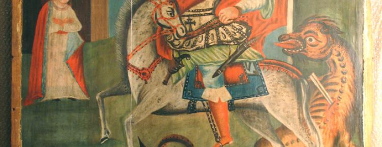 День пам’яті святого великомученика, чудотворця і переможця Георгія відзначають 6 травня. Тема святого Георгія займає важливе місце в образотворчому мистецтві християнського світу. В українському світосприйманні Георгій виступав як ревнитель добра і справедливості, до нього зверталися, як до захисника. Ікони із зображенням святого Георгія були в багатьох українських церквах, частіше сільських, що відповідало смакам простого народу.