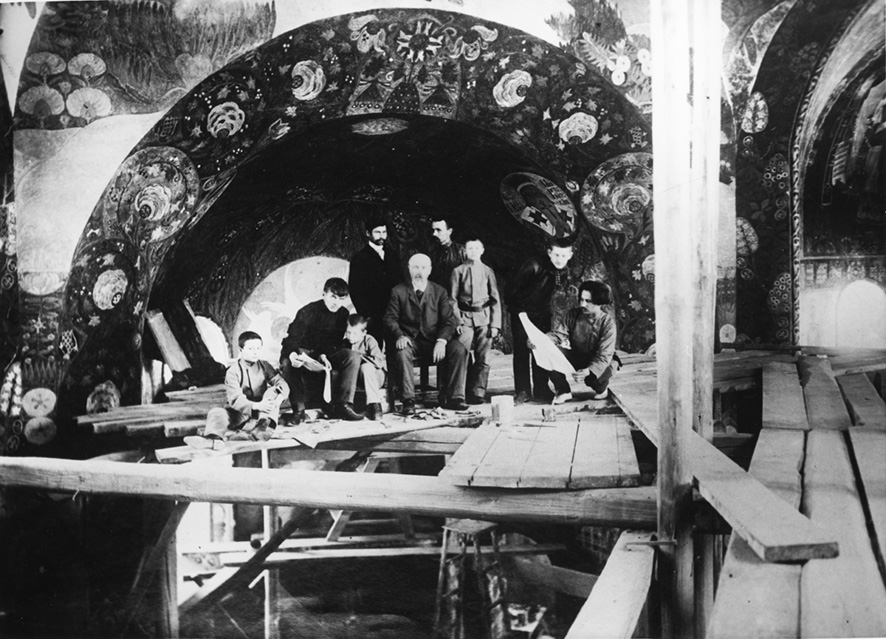 1. Бригада художників, що розписувала Успенський собор. У другому ряду в центрі – художник А. О. Лаков та академік В. Д. Фартусов. Кінець ХІХ – початок ХХ ст. (КПЛ-Ф-13553-13555)