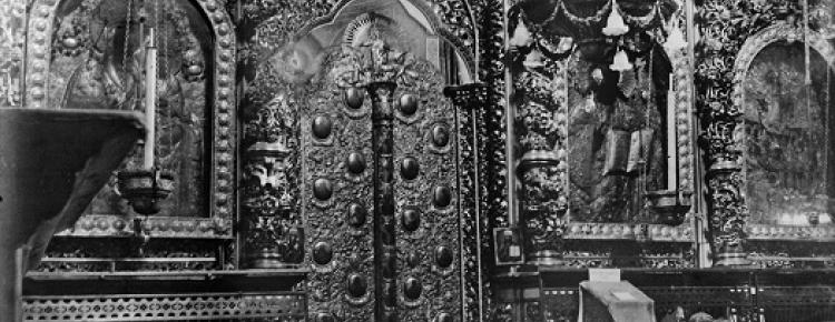 3. Іконостас Успенського собору XVIII ст. з чудотворною іконою «Успіння Богородиці» над Царськими вратами. Фотографія. Початок XX ст.
