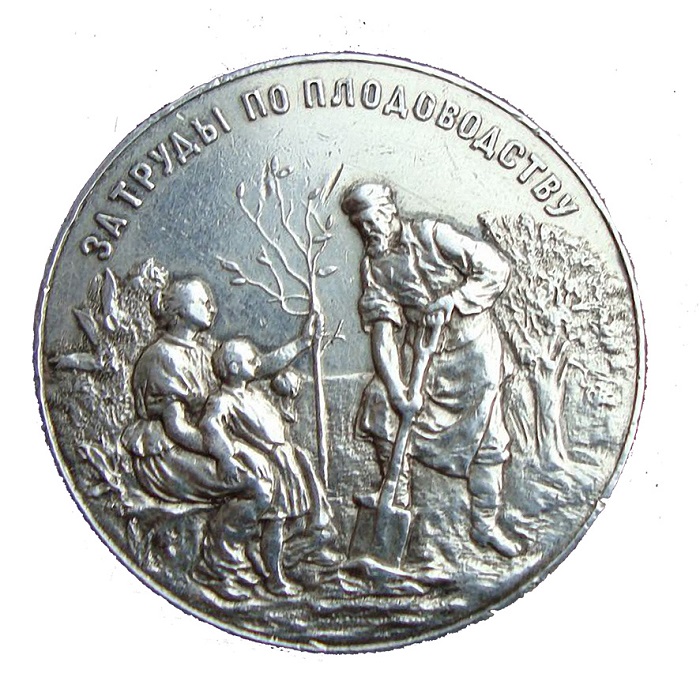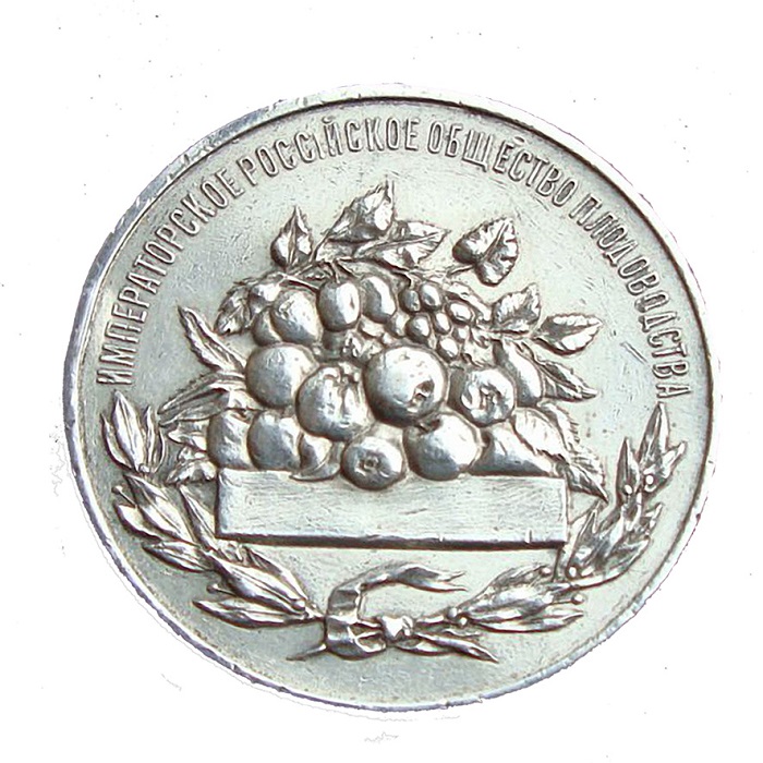 2, 3. Велика Срібна медаль Імператорського російського товариства плодівництва «За труды по плодоводству» була дуже подібною до великої Золотої медалі.