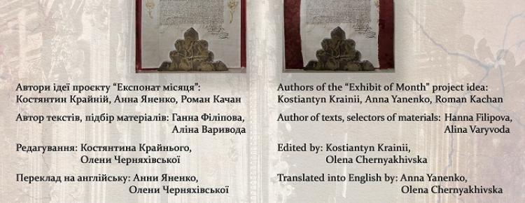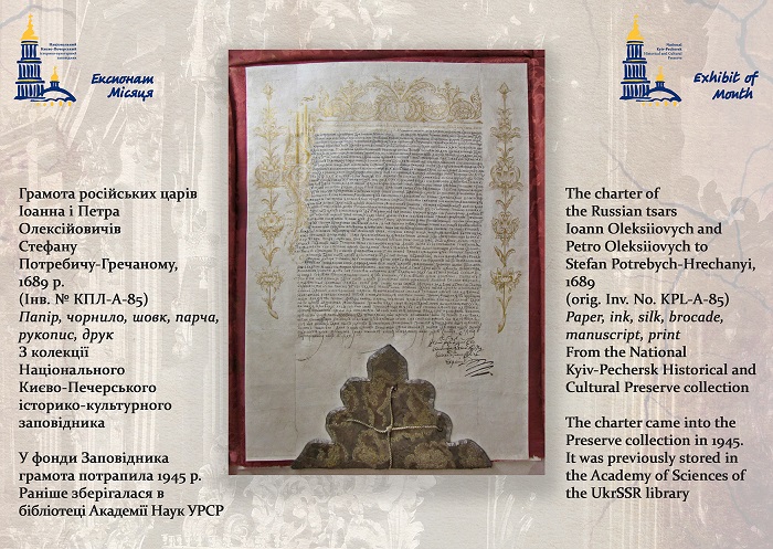 З приємністю представляємо до вашої уваги черговий випуск «Експоната місяця». Сьогодні ми презентуємо рідкісний документ із колекції Заповідника – царську підтверджувальну грамоту 1689 року на земельні володіння гадяцькому полковому судді Стефану Потребичу-Гречаному.