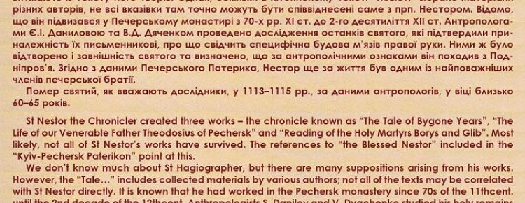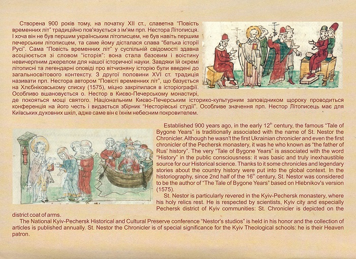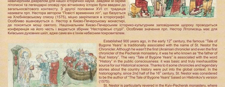 Сьогодні, 9 листопада, ми вшановуємо пам’ять преподобного Нестора Літописця, а також, починаючи з 1997 року, відзначаємо і День української писемності та мови. З нагоди цих подій співробітниками Заповідника підготовлено онлайн-виставку «Прп. Нестор Літописець та “Повість временних літ”», де оповідається як про першого вітчизняного історика, так і про вивчення його літературного спадку і вшанування преподобного у минулому та в наш час.