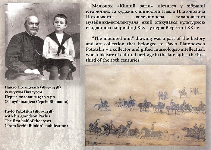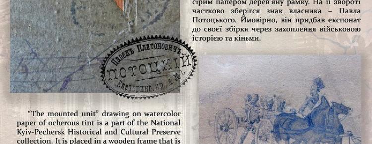 Раді представити до вашої уваги черговий випуск «Експоната місяця». Сьогодні ми презентуємо малюнок «Кінний загін» із колекції Національного Києво-Печерського історико-культурного заповідника. Він був у зібранні історичних та художніх цінностей відомого українського музейника та фахівця з військової історії Павла Платоновича Потоцького (12.12.1857 – 27.08.1938), чий день народження ми відзначаємо цього місяця.