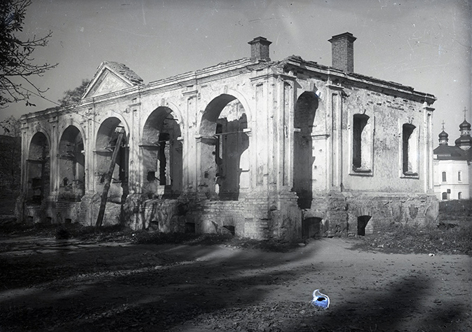 1. Солдатська гауптвахта між корпусом № 19 Києво-Печерської лаври та церквою Спаса на Берестові. 1920-ті рр. [НКПІКЗ, інв. № КПЛ-Н-1170]
