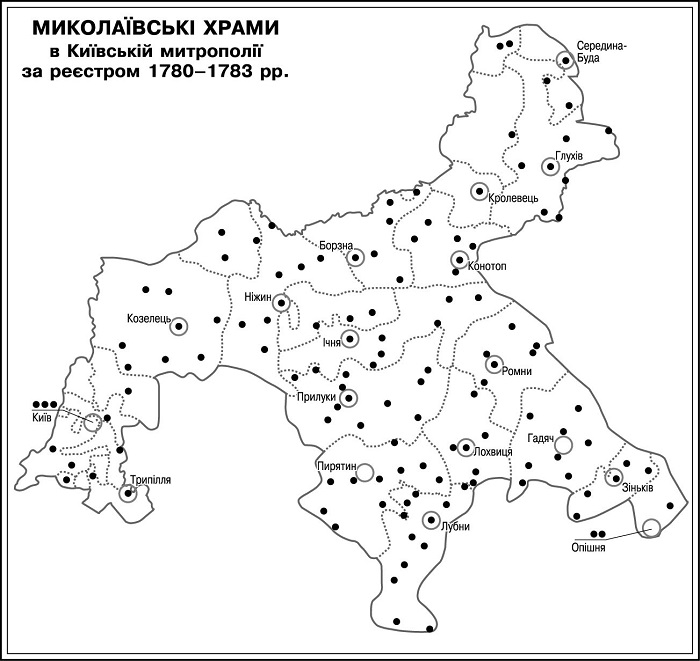 Іл. 2. Миколаївські храми в Київській митрополії за реєстром 1780–1783 рр. (Укладено О. Прокоп’юк).