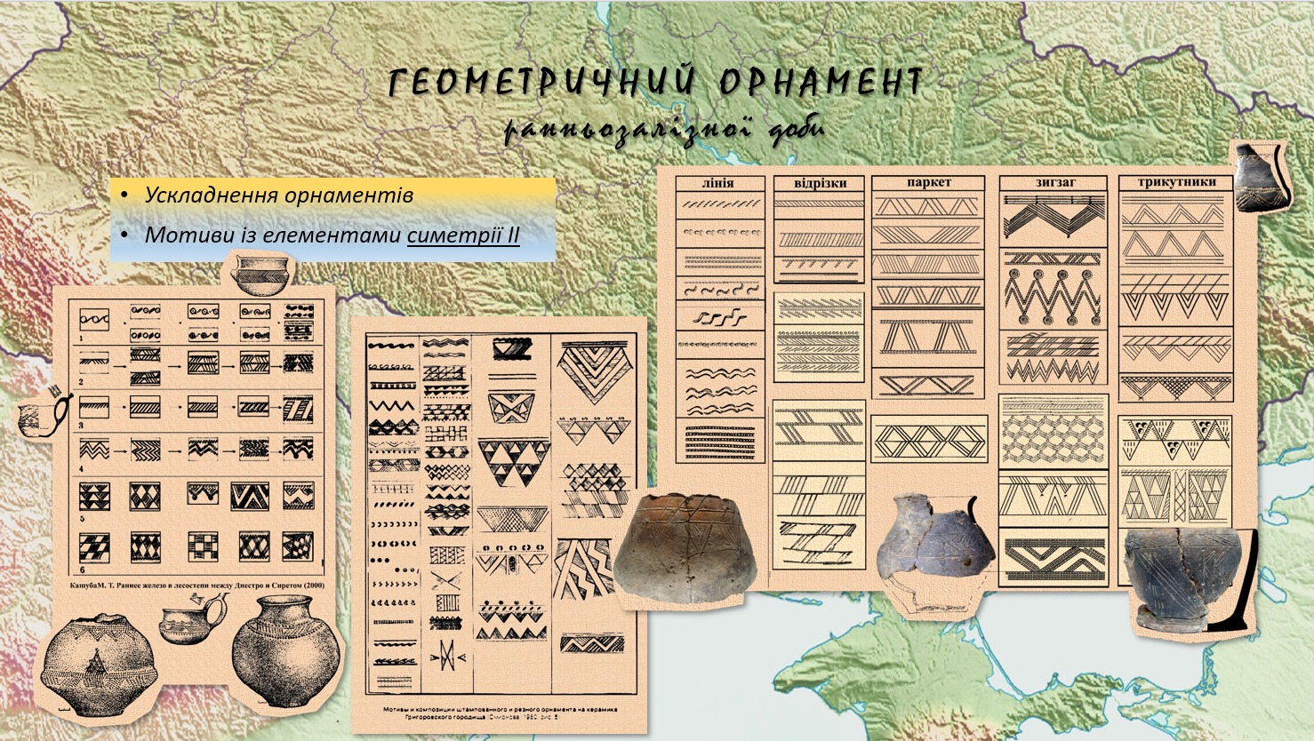 В лекції було розглянуто процес формування геометричного стилю, що виникає на теренах Східної Європи на початку доби раннього заліза. Об’єднаний загальними рисами, набором технік та мотивів, він є результатом посилення міжкультурних контактів. Розвиток орнаментального стилю мав складний та нелінійний характер, одним з проявів якого був т.зв. «орнаментальний вибух».