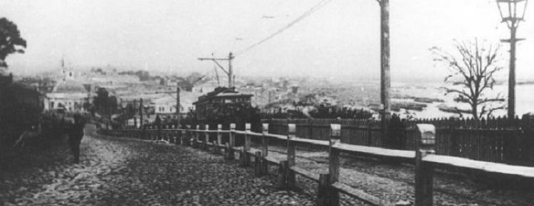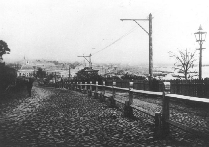 1. Вагон київської міської залізниці на Володимирському узвозі. 1894 р.