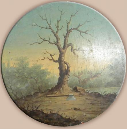 У силуеті дерева, формі його гілок впізнаємо інжир, або смоківницю, одну з найдавніших культурних рослин на Землі. У євангельській притчі про безплідну смоківницю, згідно з богословським тлумаченням, Ісус Христос мав на увазі фарисеїв та книжників старозавітного Ізраїля і кожну людину, яка не приносить плода віри і добрих справ (Лк. 13:6).