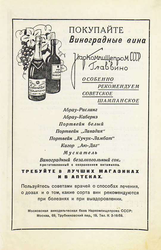 2. Реклама виноградних вин Головного управління виноробної промисловості Народного комісаріату харчової промисловості СРСР. 1939–1940 рр.