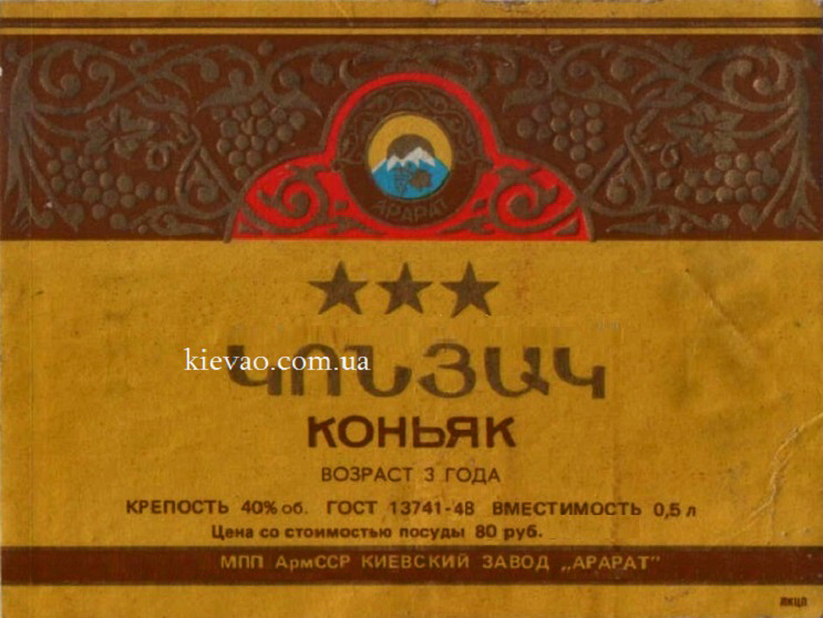 3. Етикетка коньяку, виготовленого на Київському заводі тресту «Арарат»