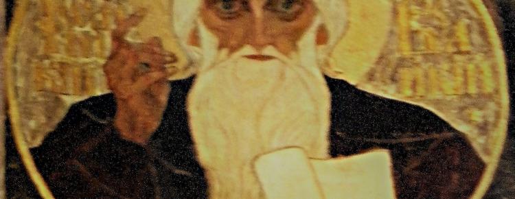 І. С. Їжакевич. Св. Іоаникій Великий. Церква Прпп. Антонія і Феодосія Печерських. Медальйон на арці екседри. 1905 р.