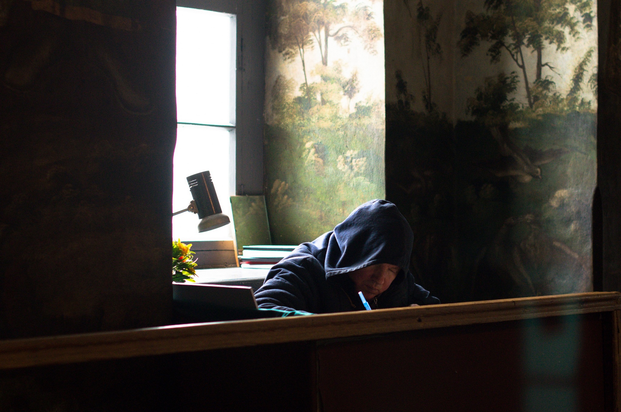 12. Наглядач на робочому місці. Інтер’єр Троїцької надбрамної церкви. Фото М. Штонди 2018 р.