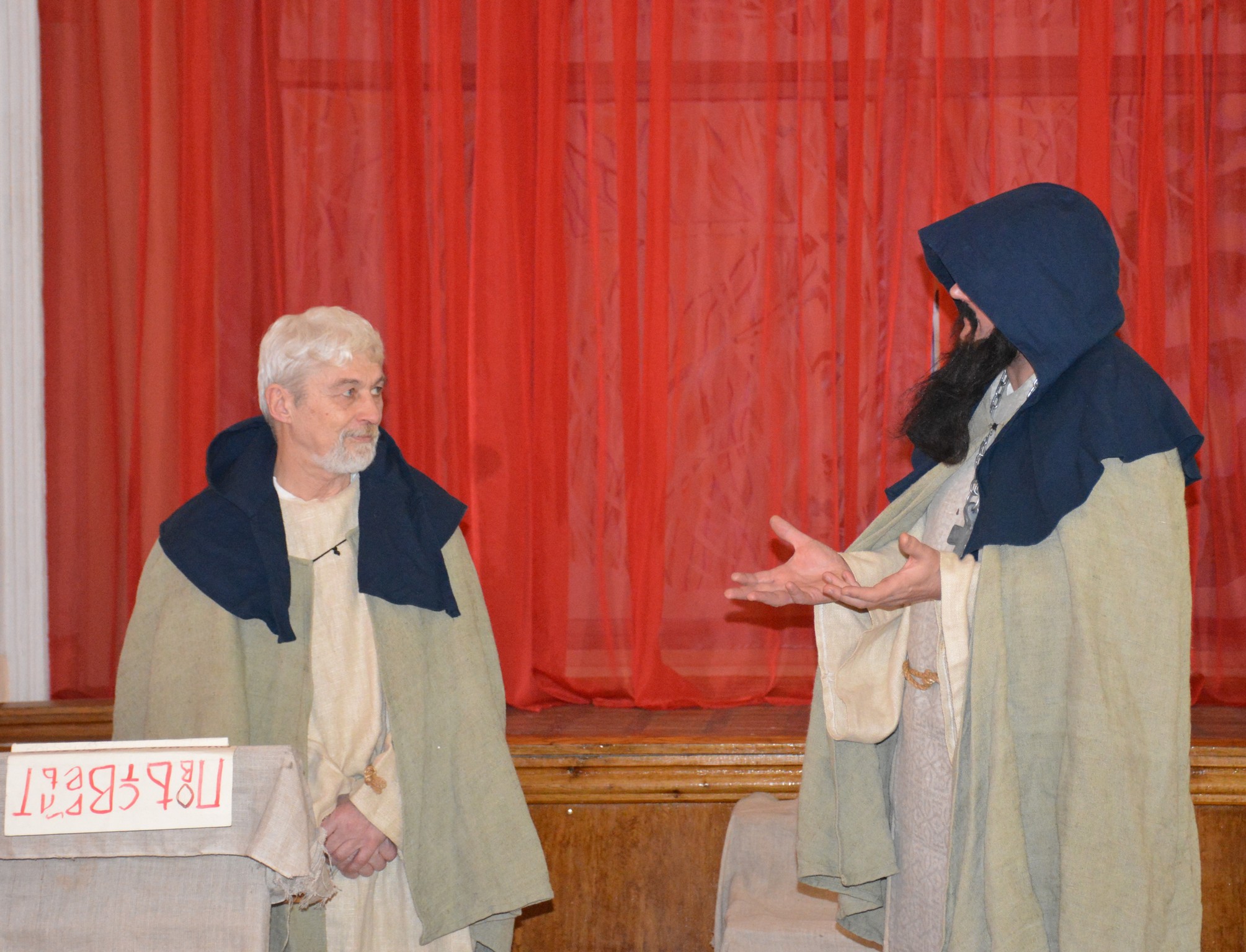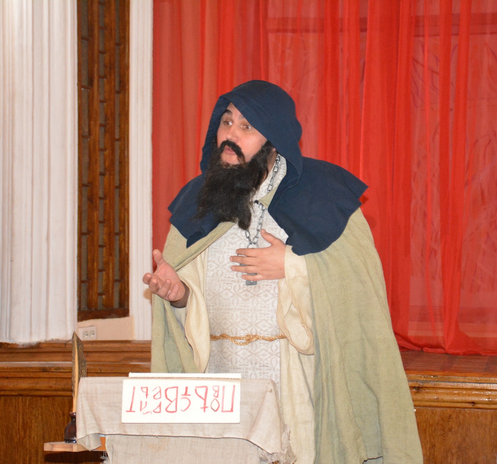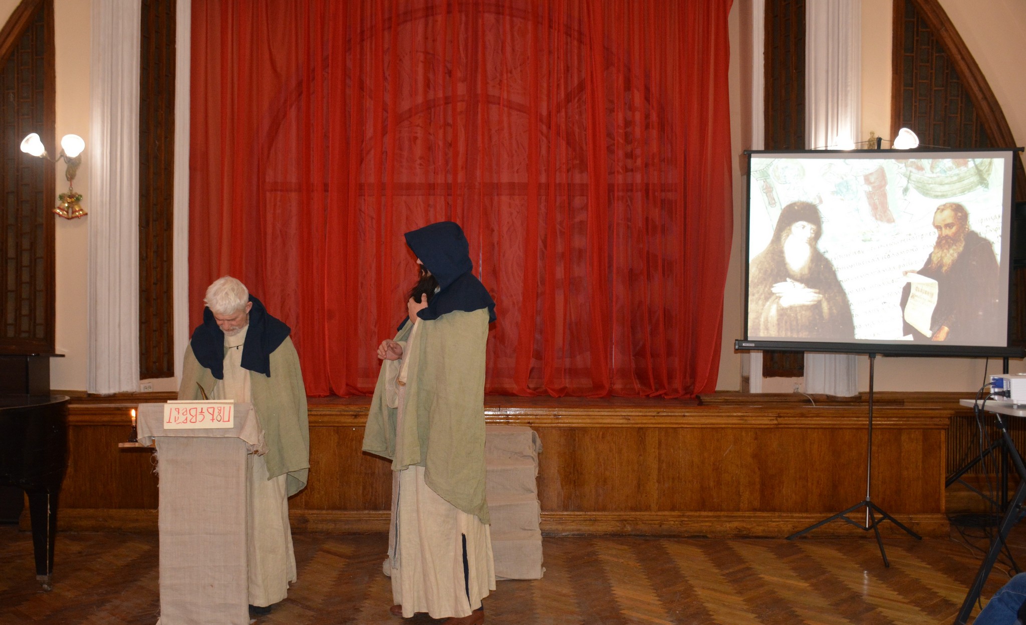 Понад 900 років минуло від написання «Повісті врем’яних літ». Автора цього твору ченця Києво-Печерського монастиря прп. Нестора вважають першим вітчизняним істориком, літератором. Лекція-вистава розповідає про епізод з історії Київської Русі, коли ігумен Видубицького монастиря Сильвестр дискутує з прп. Нестором та забирає у нього літопис за наказом князя Володимира Мономаха.