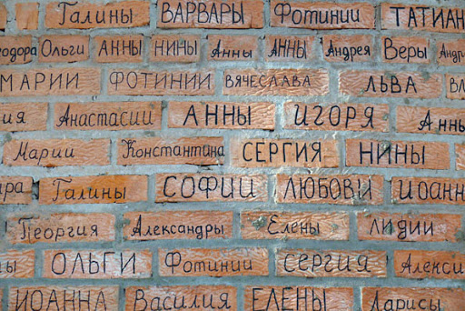 Іл. 2. Цеглини сучасного храму, підписані іменами віруючих