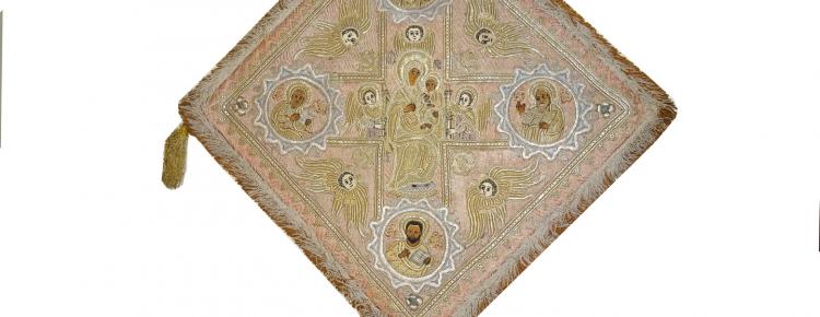 Дорогі друзі! Сьогодні у рубриці «Мистецька спадщина» пропонуємо до вашої уваги палицю (предмет богослужбового облачення вищого духовенства) кінця XVII – початку XVIIІ ст. з гаптованим образом Богородиці Куп’ятицької (КПЛ-Т-171, 37,0×37,0 см).