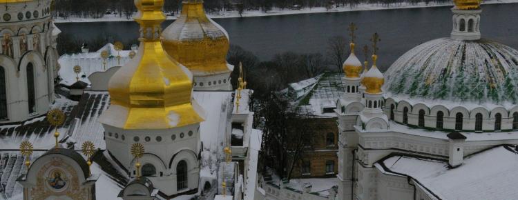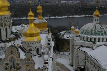 1. Погляд на Успенський собор і церкву Прпп. Антонія і Феодосія Печерських з Великої лаврської дзвіниці. Фото М. Борового, 2019 р.