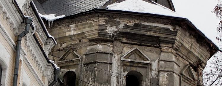 Іл. 1. В інтер’єрі Троїцької надбрамної церкви. Розписи притвору. Фото О. Мельник, 2018 р.