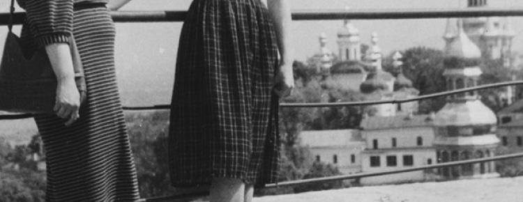 7. На оглядовому майданчику. Екскурсоводи Г. Литвиненко і Н. Свешнікова. Середина 1980-х рр.