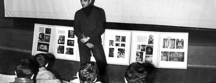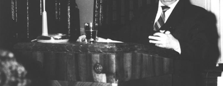 9. Науковець О. Литвиненко читає лекцію. Кінець 1980-х рр.