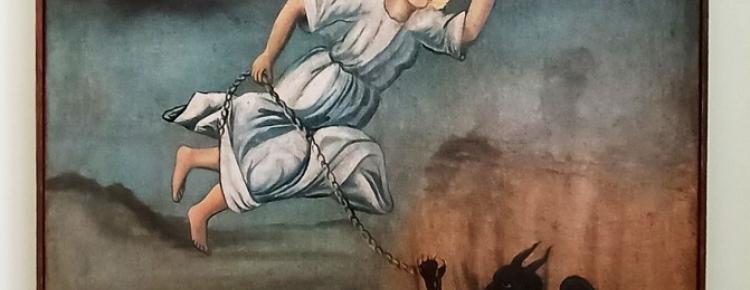 Дві цікаві пам’ятки народного іконопису першої чверті ХІХ ст., що нині зберігаються у колекції Заповідника, в 1897 р. надійшли до Київського Церковно-археологічного музею з Оргіївського повіту Бессарабської губернії. Ця частина Молдови до 1812 р. була складником Османської імперії. Сьогодні в рубриці «Духовна культура» йтиметься про ікону «Ангел, який сковує сатану».