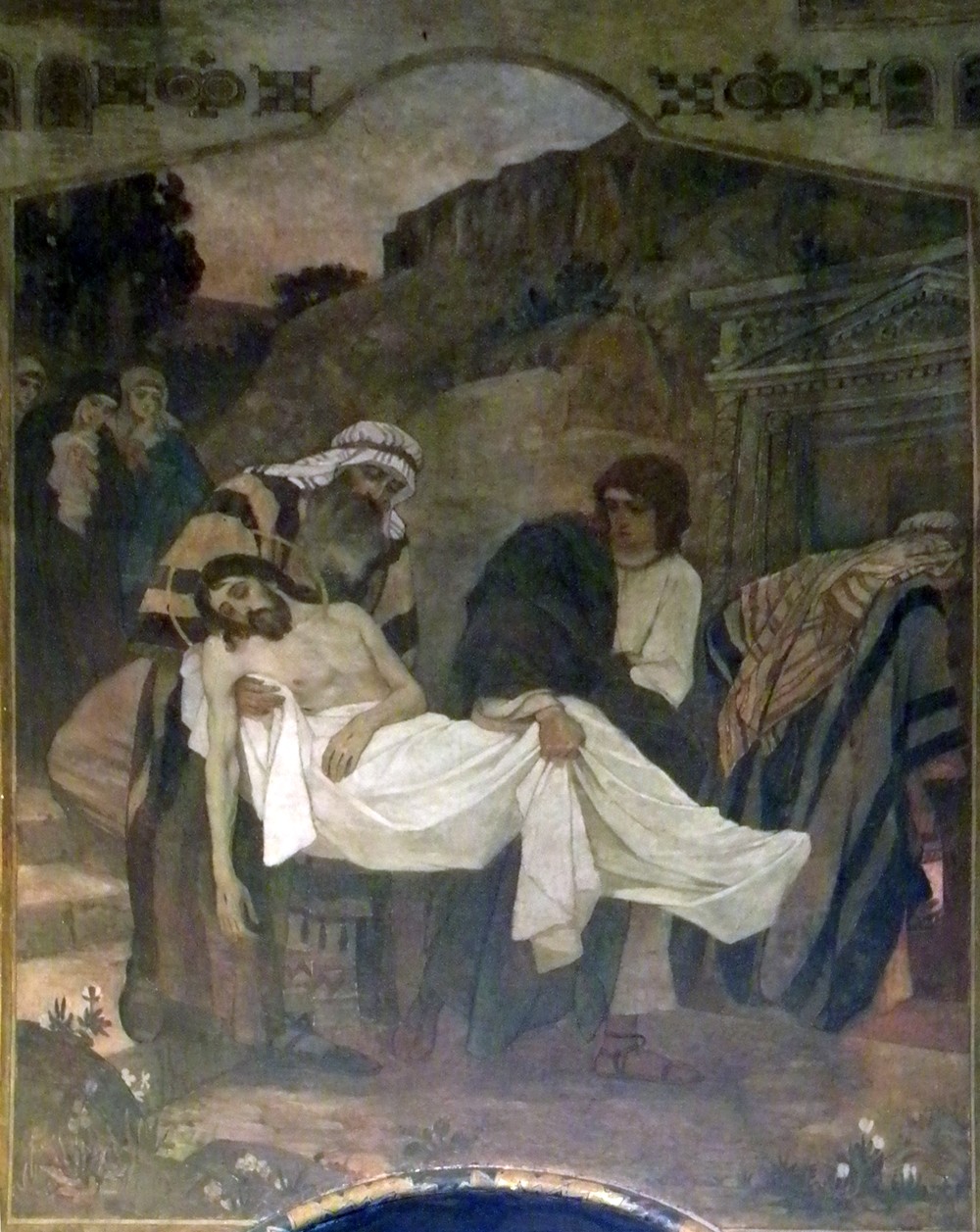Г. І. Попов «Перенесення тіла Христа у гробницю». Розписи церкви Прпп. Антонія і Феодосія Печерських. Початок ХХ ст.