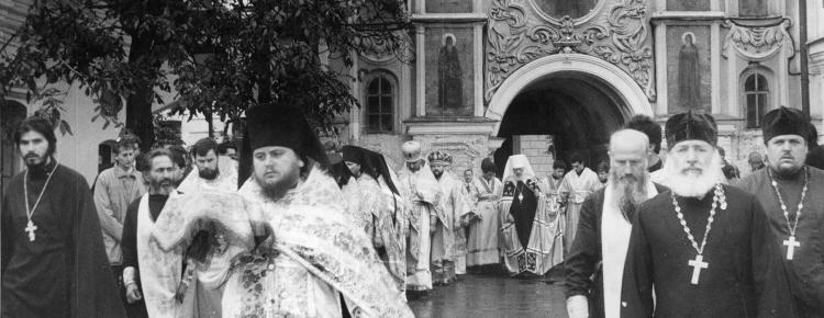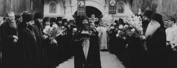 20 червня 1992 р. новообраний предстоятель Української православної церкви Блаженніший Митрополит Київський і всієї України Володимир (Сабодан) прибув до Києво-Печерської лаври, яка впродовж наступних 22-х років стала його головною резиденцією. Його урочисто зустріли представники духовенства і віряни. А вже за тиждень, у ніч з 26 на 27 червня, у Хрестовоздвиженській церкві на Ближніх печерах було віднайдено і перенесено до Дальніх печер мощі священномученика Володимира (Богоявленського), митрополита Київського і Галицького (†1918), першого православного єпископа, котрий став жертвою гонінь більшовицької влади проти Церкви.