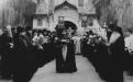 8. Братія Києво-Печерської лаври перед головною брамою в очікуванні свого священноархімандрита. В центрі – намісник Лаври, архімандрит Питирим (Старинський)