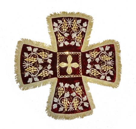 Важливою тенденцією, що визначила розвиток українського церковного гаптування ХІХ ст., стало поступове порушення внутрішнього зв’язку між оформленням та літургійною символікою тканин. Багатофігурні сюжетні композиції, присвячені розкриттю християнського віровчення, почали дедалі рідше траплятися в оздобленні церковних облачень. Майстрині надавали перевагу вишуканим декоративним орнаментам, мотиви яких часто копіювали з виробів світського мистецтва, залежних від зміни історичних стилів та модних віянь. У вирішенні гаптованих творів першої третини ХІХ ст. можна бачити впливи пізнього класицизму та його завершального етапу – ампіру. Пам’ятки цього періоду виділяються врівноваженістю та лаконічністю композиції, серед орнаментальних мотивів набувають поширення зображення дубового листя (іл. 1), квіткових букетів і гірлянд, перев’язаних стрічкою з бантами (іл. 2). Захоплення стилістикою романтизму знайшло вияв у натуралістичних зображеннях квітів, що вишивали синеллю на різноманітних церковних виробах (іл. 3). Використання різнокольорової синелі – нитки з коротким шовковим ворсом – приваблювало майстринь ще у XVIII ст. Такі нитки цінували за багату гаму кольорів та здатність створювати м’яку оксамитову поверхню шитва. Поєднання золотого гаптування та синельної вишивки надавало зображенням особливої камерності, відповідало естетичним уподобанням дворянського та міського середовища. Ще одним популярним мотивом церковного декору ХІХ ст. була виноградна лоза ‒ один із основних християнських символів, яку часто гаптували на літургійних покровах і предметах облачення, доповнюючи зображеннями колосся і гілками троянд (іл. 4). Протягом століття трактування цих мотивів практично не змінилося. Орнаменти гаптували золотом і сріблом по оксамиту або блискучому глазету. Особливу увагу приділяли світлотіньовим переходам, утвореним завдяки контрастному поєднанню двох видів металевих ниток – простих і гранчастих, використання канителі (металевої спіралеподібної нитки), блискіток і плащиків.