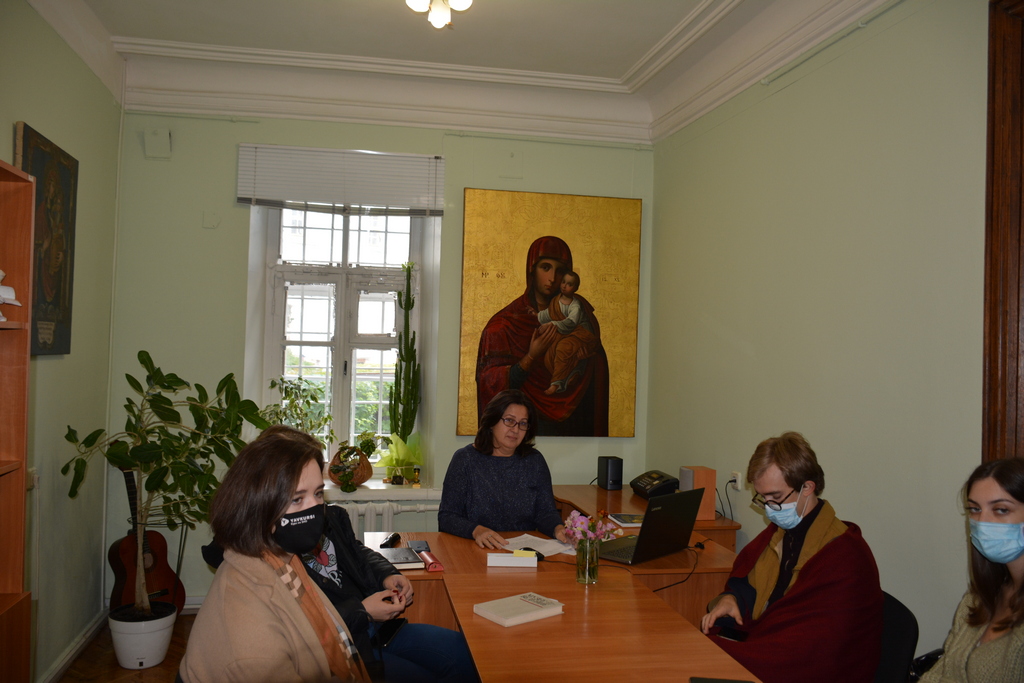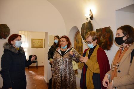 1. Практичне заняття з атрибуції й експертизи культурних цінностей в Музеї історії Києво-Печерської лаври. На фото: к. мист., начальник н.-д. відділу вивчення мистецької спадщини Кондратюк А.Ю., д. мист., проф., викладач кафедри Історії мистецтв Історичного факультету КНУ імені Тараса Шевченка Школьна О.В., студенти ІІ курсу магістратури кафедри Історії мистецтв.