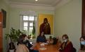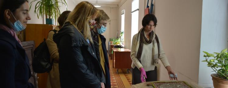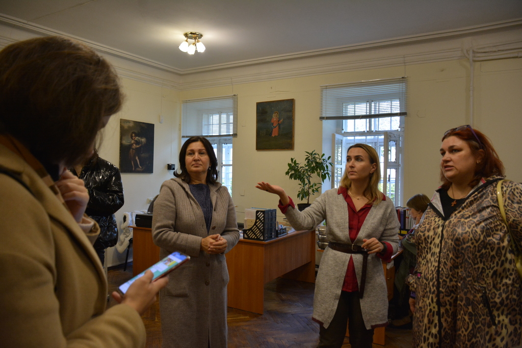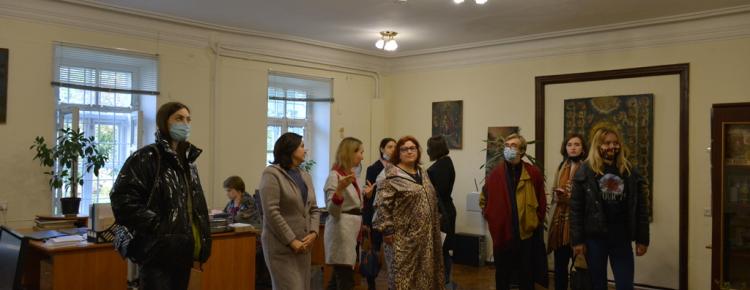 6. Практичне заняття з атрибуції й експертизи культурних цінностей у відділі науково-фондової роботи Національного заповідника «Києво-Печерська лавра». На фото: Головний зберігач фондів Мартинюк І.О., зав. сектору відділу науково-фондової роботи Івакіна І. Ю., д. мист., проф., викладач кафедри Історії мистецтв КНУ імені Тараса Шевченка Школьна О.В., студенти ІІ курсу магістратури кафедри Історії мистецтв.