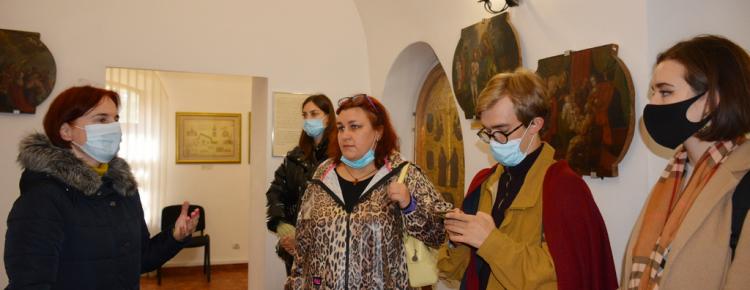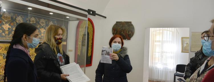 2. Практичне заняття з атрибуції й експертизи культурних цінностей в Музеї історії Києво-Печерської лаври. На фото: к. мист., начальник н.-д. відділу вивчення мистецької спадщини Кондратюк А.Ю., д. мист., проф., викладач кафедри Історії мистецтв КНУ імені Тараса Шевченка Школьна О.В., студенти ІІ курсу магістратури кафедри Історії мистецтв.