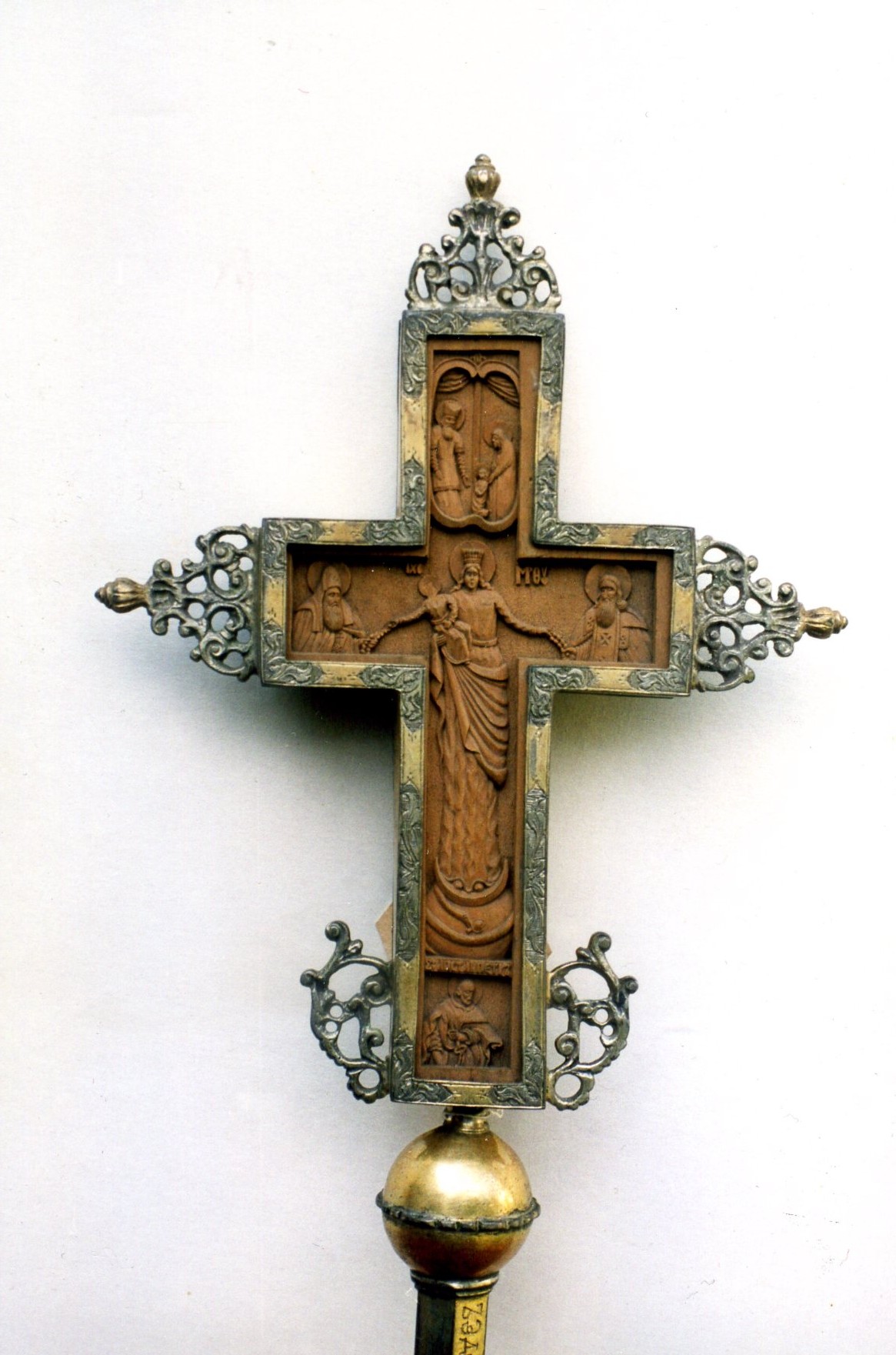 Іл. 1. Хрест благословенний. 1739 р., Київ. Вклад типографського послушника Ігоря Балувенка до Успенського собору Києво-Печерської лаври. Дерево, площинне різьблення, срібло, оброн, гравіювання, литво, золочення. КПЛ-М-8749