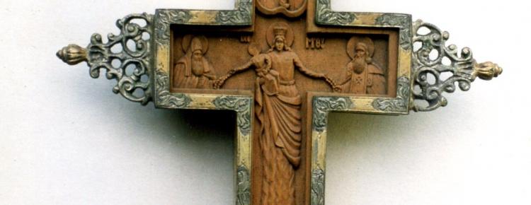Мистецтво української різьбленої сакральної пластики XVII–XVIII ст. має особливе художнє «обличчя». Таким прикладом є образ Богородиці на благословенному хресті, вкладі 1736 р. в Успенський собор Києво-Печерської лаври типографського послушника ченця Ігоря Болувенка (КПЛ-М-8749, 30,0×13,7 см).