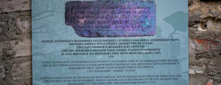 Відтепер відвідувачі можуть оглянути поховальні плити середини XVIII ст., що влаштовані з внутрішнього боку Мазепинського оборонного муру на схід від Південної (Годинникової) башти.