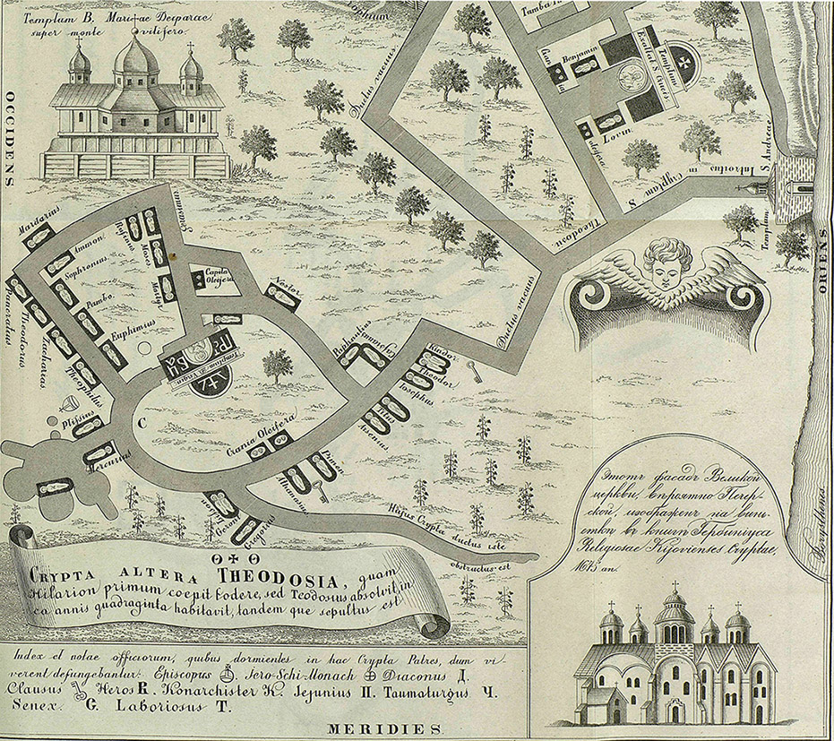 Іл. 1. «Виноградна» гора над Дальніми печерами на плані 1674 р., складеному Інокентієм Гізелем