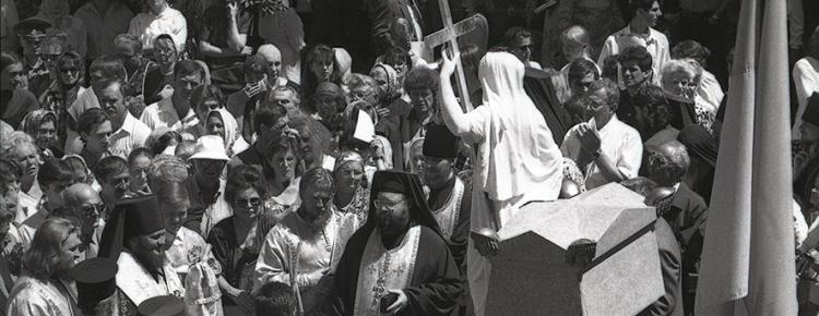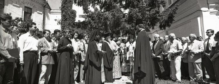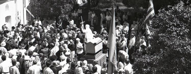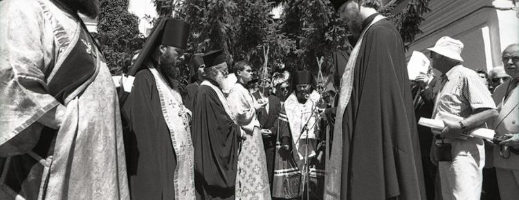 Ми продовжуємо публікацію фотоматеріалів з колекції Національного заповідника «Києво-Печерська лавра», що присвячені відновленню надгробного пам’ятника князю Костянтину Олександровичу Іпсіланті (1760–1816). Сьогоднішній випуск оповідає про урочисте відкриття пам’ятника, яке відбулось 29 червня 1997 р. В заході брали участь члени Всегрецької спілки понтійських офіцерів імені Олександра Іпсіланті, які ініціювали відтворення надгробка та інші почесні гості. Урочистості розпочалися молебнєм, в якому разом із лаврською братією відслужили представники Елладської православної церкви.