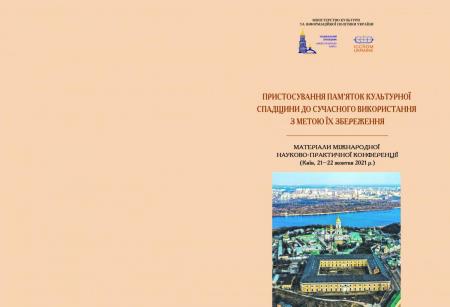 Пристосування пам’яток культурної спадщини до сучасного використання з метою їх збереження. Матеріали Міжнародної науково-практичної конференції (Київ, 21–22 жовтня 2021 р.) / Упоряд. А. Є. Антонюк, редкол.: О. В. Рудник (голова) та ін. – Київ : НЗ «Києво-Печерська лавра», ICCROM України, Видавництво «Фенікс», 2021. – 132 с., іл.