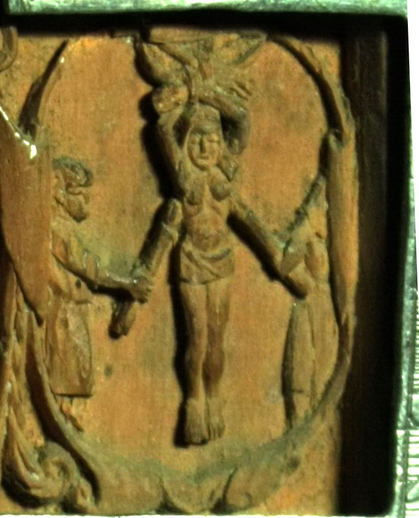 Іл. 7. Катування св. вмц. Варвари. Хрест козаків Куреня Менського. 1759 р. Зворотній бік. Фрагмент