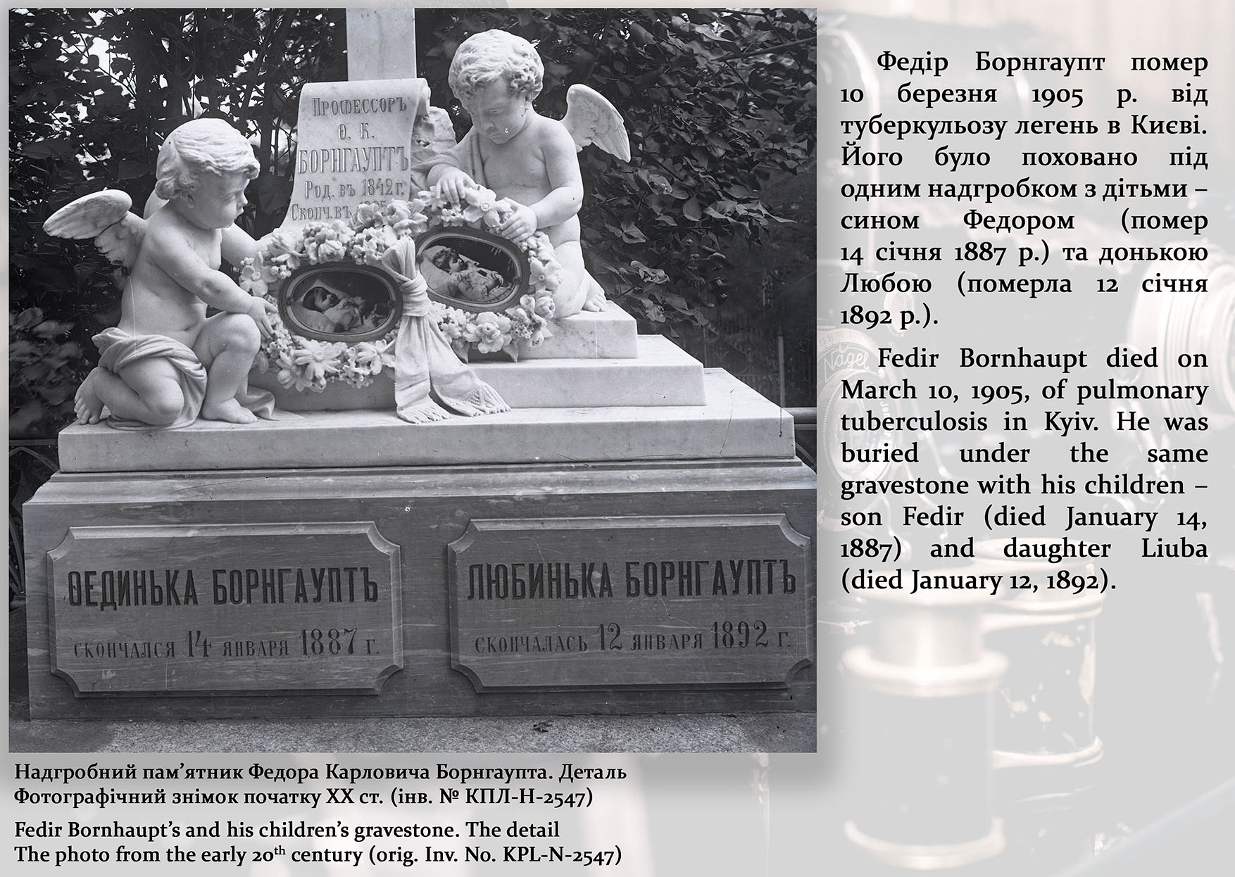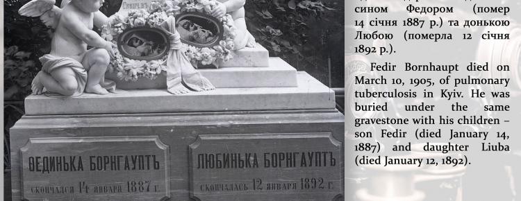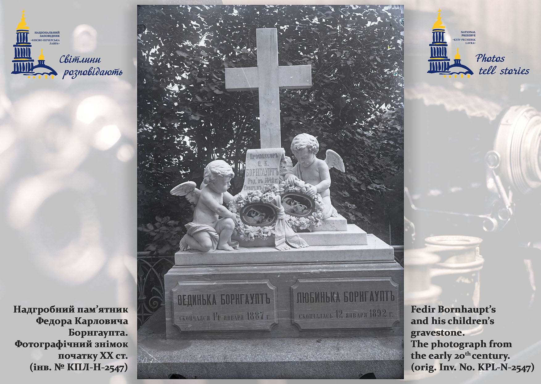Раді представити вашій увазі новий проєкт співробітників Національного заповідника «Києво-Печерська лавра» «Світлини розповідають». Перший випуск присвячено історії, прихованій за фотографією з нашої колекції – зображенням надгробного пам’ятника Федора Карловича Борнгаупта та його дітей із кладовища на Аскольдовій могилі.