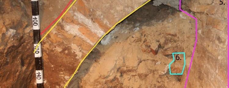 У жовтні 2021 року в підлозі корп. 21 утворився провал. На його місці працівниками СУППР Заповідника було закладено шурф розмірами 1,2×1,6 м, глибиною до 2,0 м (іл. 1). Співробітниками науково-дослідного сектору археології зафіксовано шість різновидів кладок з хронологією від другої половини ХVІІІ до ХХІ ст. (іл. 2), декілька архітектурних конструкцій (Арки 1, 2) та заповнення археологічного об’єкта № 1, датування якого вимагає додаткового дослідження (іл. 3-6). Серед нечисленного матеріалу трапилися фрагмент вінця XV ст. та два фрагменти підлогової смальти або частини орнаменту підлогової плитки (іл. 7). Ми вважаємо, що ця ділянка потребує подальшого археологічного вивчення.