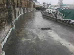 Програмою ремонтно-реставраційних робіт на 2021 р. передбачалося фінансування об’єкта у сумі 3 000 000,00 грн., за рахунок якої у IV кварталі виконані роботи з розбирання дерев’яних конструкцій захисного накриття ярусу монастирського муру та металевого накриття; розбирання відмощення з бетонних плит; демонтаж деструктованого цегляного мурування стіни; укріплення фундаментів ін’єкційним розчином; влаштування відсічної гідроізоляції стіни методом ін’єктування із застосуванням спеціального розчину; підготовчі роботи (виготовлення кружал) для реставрації та відновлення арок галереї.