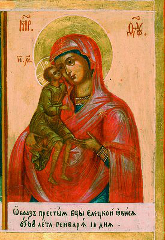 1. Згідно з переказами, Чернігівський Єлецький монастир засновано бл. 1060 р. на місці, де на ялині 6 лютого явилась чудотворна Єлецька ікона Богородиці. Зруйнований 1239 р. під час монгольської навали. Незважаючи на страшне татарське розорення монастир, вірогідно, не припинив свого існування. Чудотворна ікона, згідно з легендою, також вціліла, вмурована у церковну стіну. Проте це, на жаль, було не останнє пограбування. Після того, як 1499 р. місто було завойоване московськими військами і, як догідливо написано в історичному нарисі монастиря «с 1500 и до 1611 года вся Черниговская земля, можно сказать, мирно жила под сенью Московской державы, мирно текла жизнь и обителей черниговских» монастир втратив свою головну святиню. 1579 р. ікона Єлецької Богородиці відібрали у монастиря і вивезли до Москви нащадки князя Святослава Барятинські. 1687 р. один із Барятинських – Даниїл – взяв ікону з собою в Кримський похід, а потім, помираючи, подарував Харківському Успенському собору. Ікона зникла в часі комуністичного режиму. 1623 р. загарбаний католиками. 1649 р. знову став православним. 1676 р. монастир набув іншої ікони, привезеної із Володимира-на-Клязьмі. Але зображення на ній має мало спільного з первісною іконою, зображаючи чудо явлення ікони. 1921 р. закритий комуністичною владою, із 1992 р. тут відновлено чернече життя, але вже як жіночу обитель.