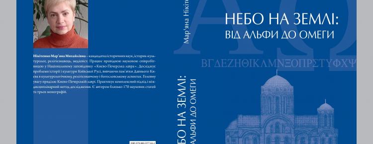 Раді повідомити, що 18 травня цього року світ побачила монографія кандидатки історичних наук, провідної наукової співробітниці Національного заповідника “Києво-Печерська лавра” Мар’яни Михайлівни Нікітенко. Назва книги: “Небо на землі: від Альфи до Омеги. Феномен Спасіння-освячення в Києво-Печерському монастирі (давньоруська доба)”. Вона присвячена історії ментальності будівничих раннього Києво-Печерського монастиря. У ній досліджено сприйняття давніми русичами процесу розбудови знаменитої чернечої обителі і, особливо, її головної святині – Великої Печерської церкви (Успенського собору).