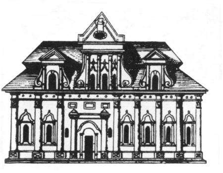 Іл. 1 Зображення будинку друкарні на гравюрі Леонтія Тарасевича “Освячення Великої Печерської церкви”. Києво-Печерський патерик 1702 р.