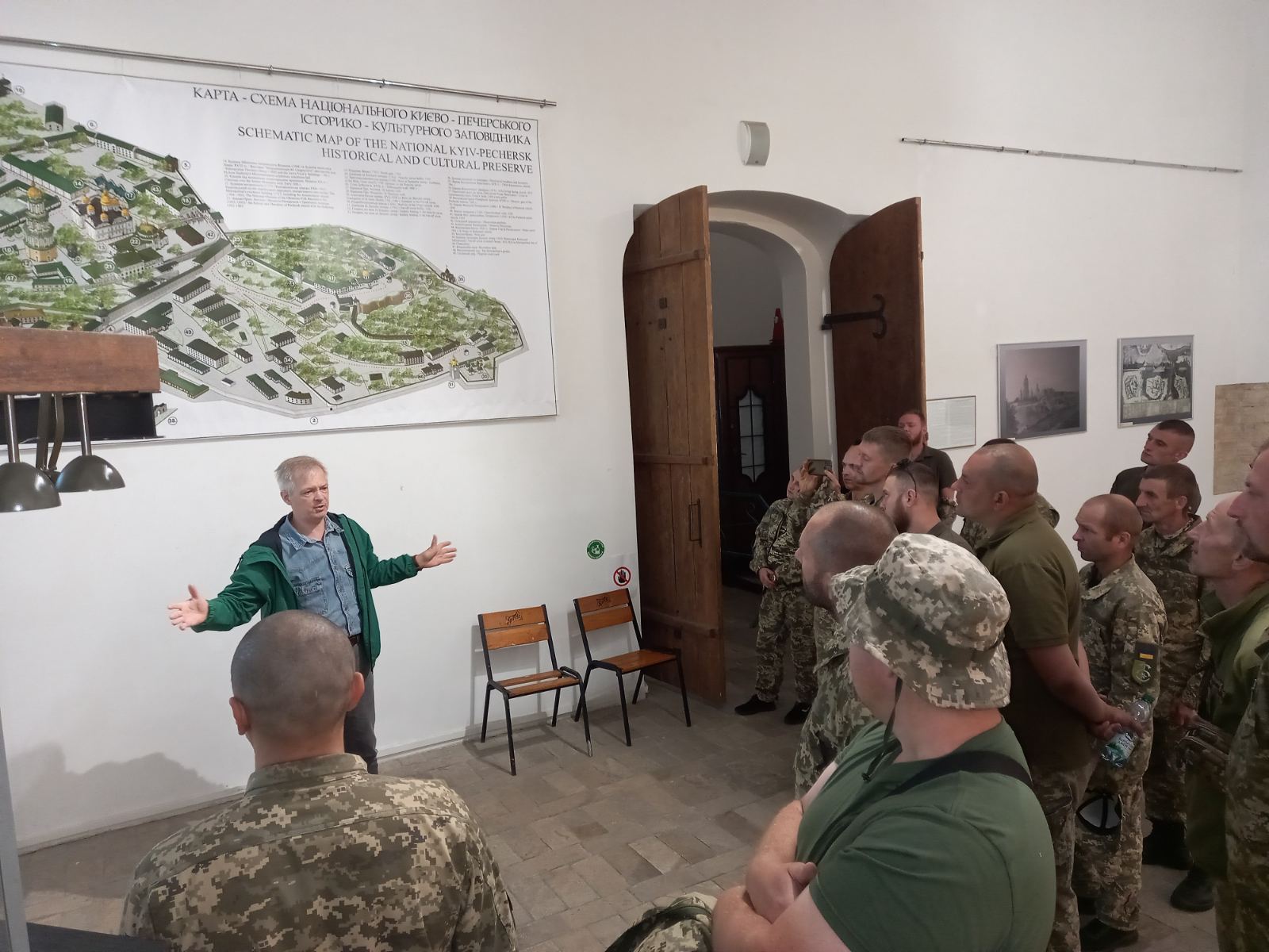 В укритті заповідника (перший ярус Великої лаврської дзвіниці), де через повітряну тривогу і почалась екскурсія, військові оглянули пам’ятки Лаври з висоти пташиного польоту за допомогою проєкту “Відеостіна”, а також ознайомились із планшетною виставкою “Києво-Печерська лавра на планах і кресленнях XVIIІ–XIX ст.” Наприкінці екскурсії воїни твердо пообіцяли ще раз, і в повному складі, завітати до заповідника та оглянути відновлені експозиції.