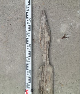 Іл. 3. Фрагмент паркану XI–XII ст. з київського Подолу (розкопки М. Сагайдака, Н. Хамайко, О. Комара)