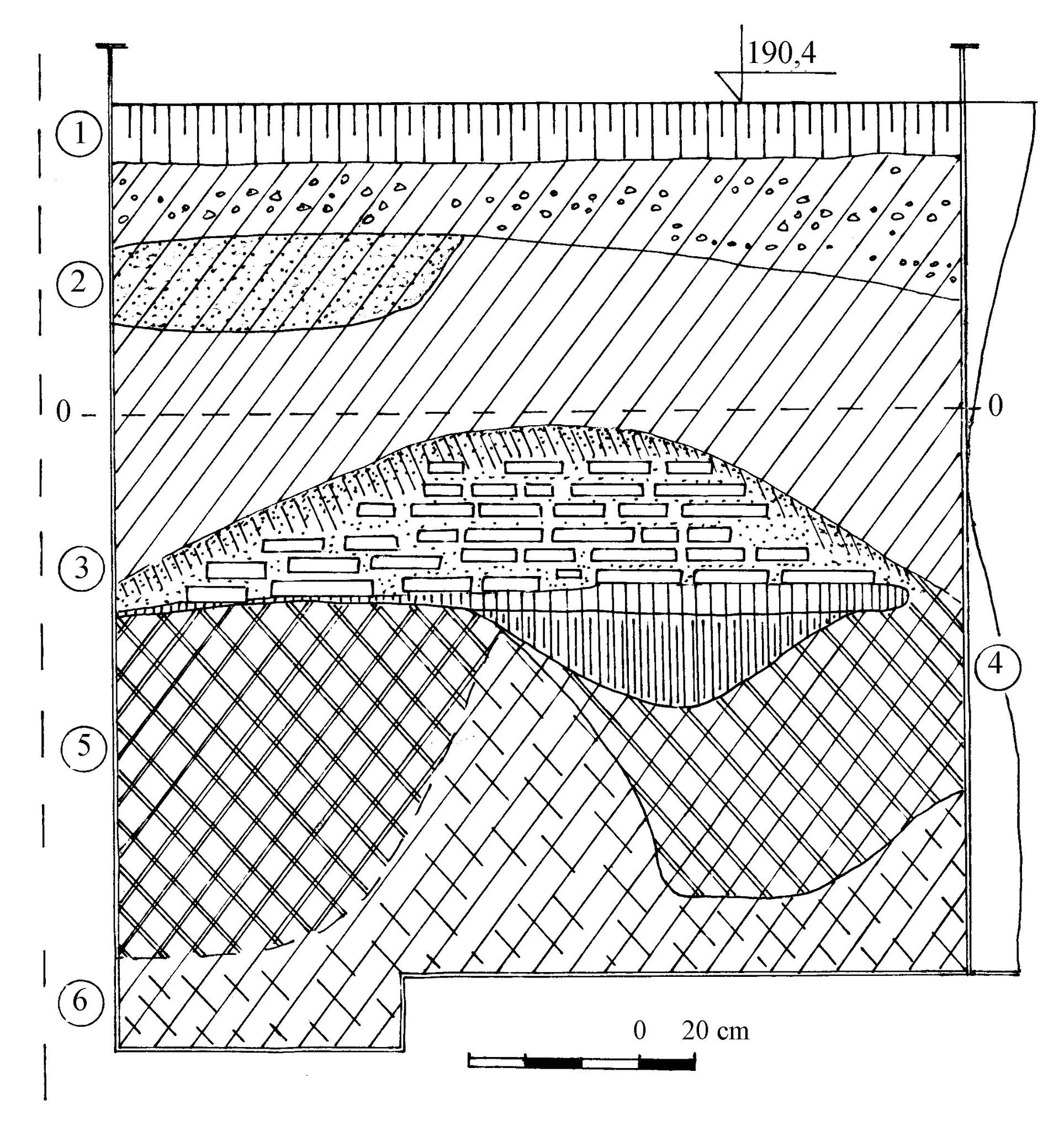 Підґрунтям для такої реконструкції стали дані з розкопок Сергія Балакіна у 2007 р. (іл. 6): ями “4 – яма № 1; 5 – яма № 2”, які, на його думку, є паралельними ровам, куди були закопані колоди від двох стінок стовп’я.