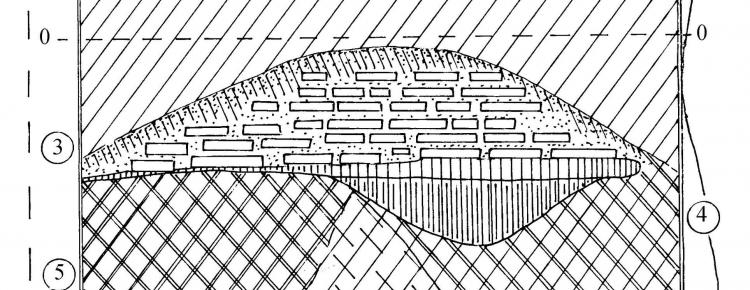 Іл. 6. Рештки лаврських мурів у профілі північної бровки траншеї. Археологічні дослідження біля Троїцької надбрамної церкви у 2007 р. (розкопки С. Балакіна)