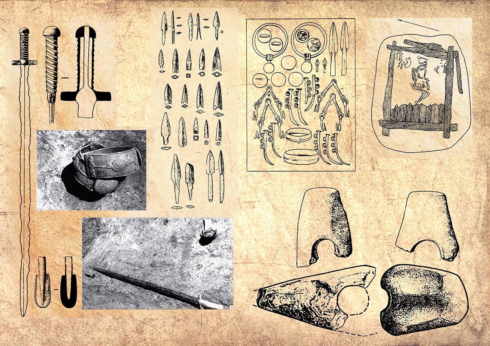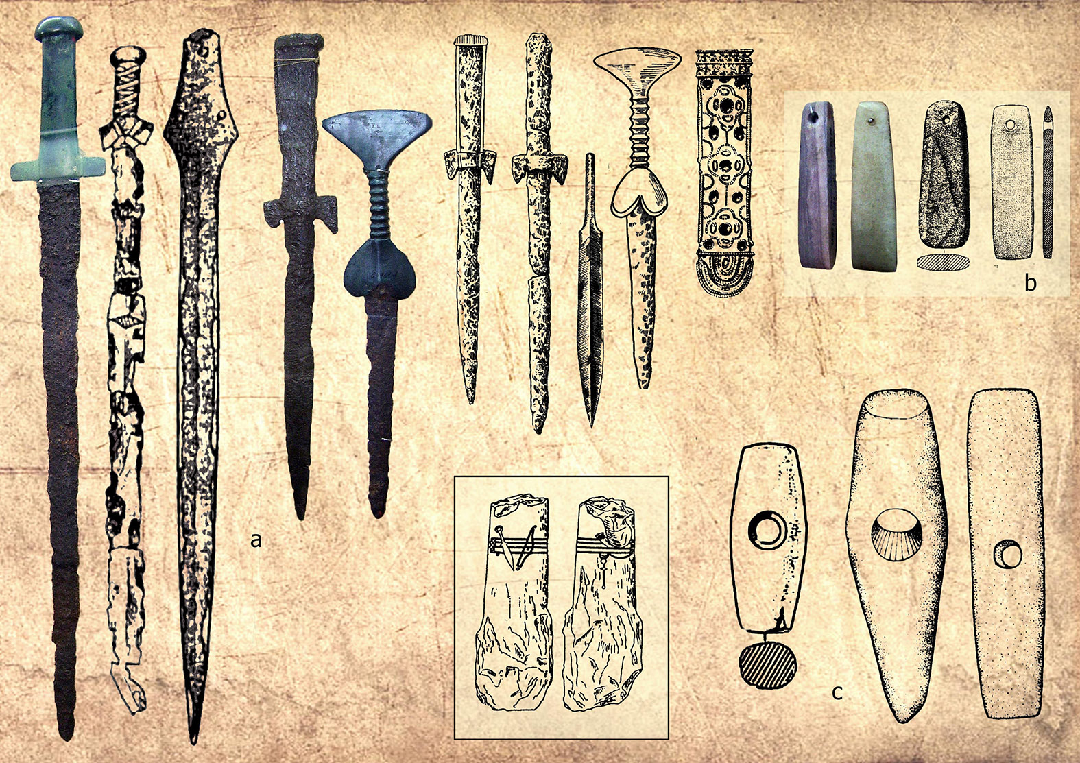 Іл. 5. Знахідки кіммерійської зброї на Київщині: а – с. Дударків Бориспільського району, в – Митрополичий сад Києво-Печерської лаври