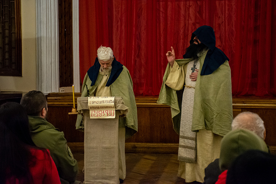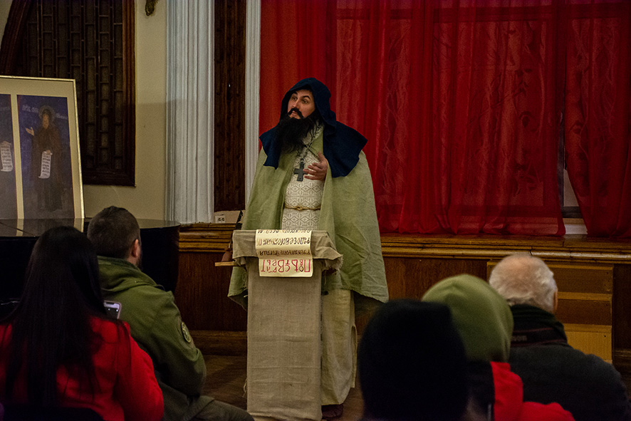 Учасниками заходу стали волонтери, працівники культури, освіти, учні Печерського району м. Києва. Для школярів було проведено лекцію-екскурсію з історії Києво-Печерської лаври, а також відбувся показ лекції-вистави “Куди прямуєш Русь-Україно?”, яку під час Революції Гідності створили співробітники відділу музейно-освітньої роботи заповідника. Автор сценарію та виконавець ролі Нестора Літописця – Анатолій Горовий. Режисер та виконавець ролі ігумена Сильвестра – Олег Топилко. Мультимедійне забезпечення – Сергій Коганов.